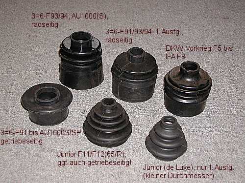 Achsmanschetten verschiedener DKW-Modelle